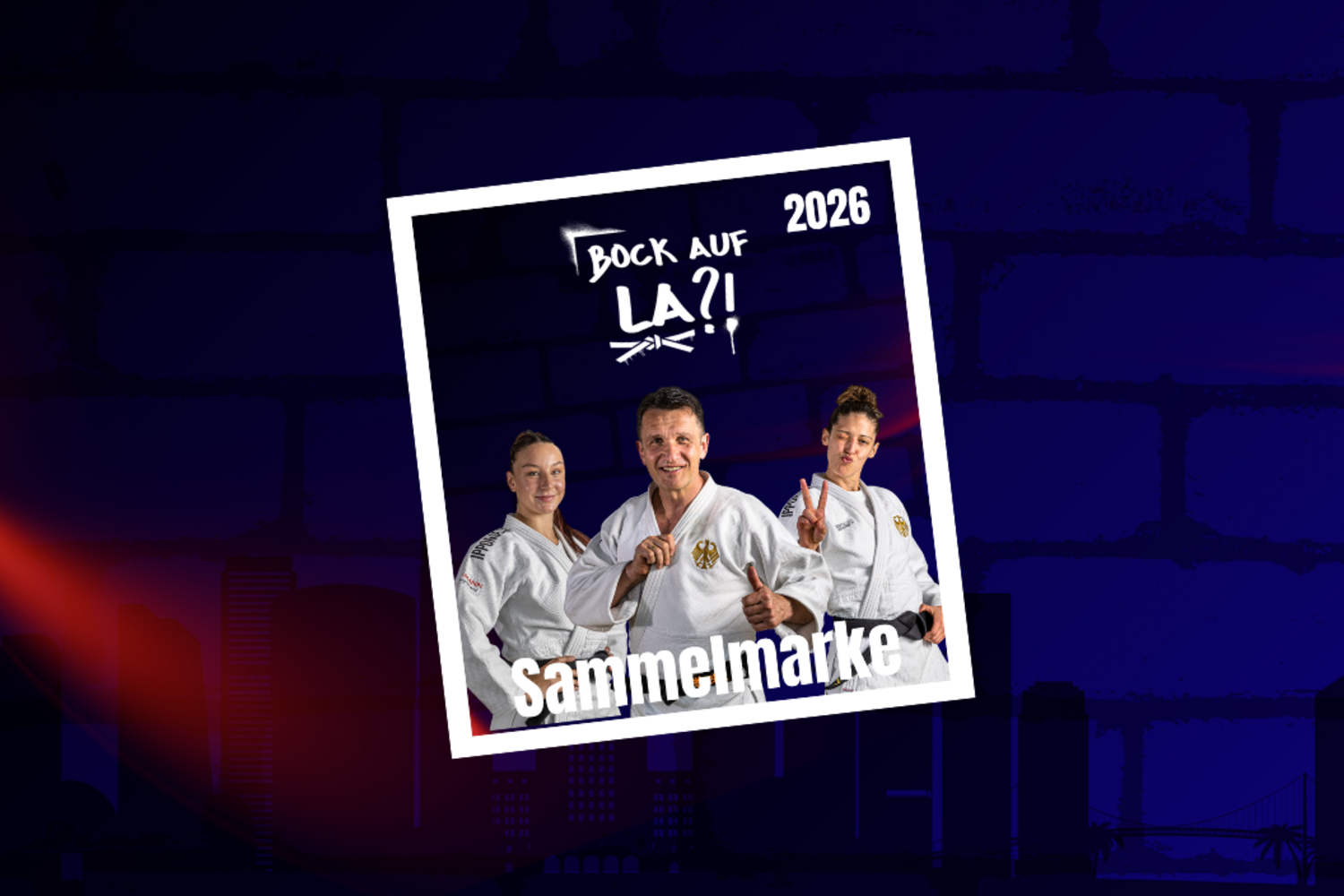 Mit der offiziellen Sammelmarke 2026 „Bock auf LA?“ wird an die Sponsoren- und Partnerkampagne des DJB erinnert. Auf dem Motiv neben Vizeweltmeisterin Anna-Monta Olek und Frauenbundestrainer Claudiu Pusa...